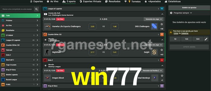 A aposta win777 oferece aos jogadores a experiência mais conveniente de apostas em eSports!